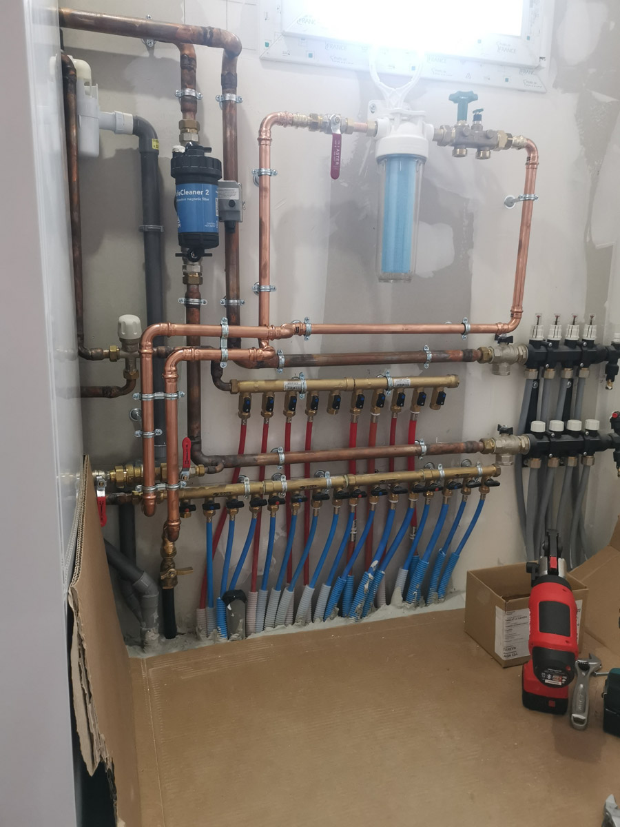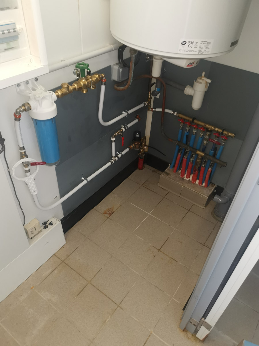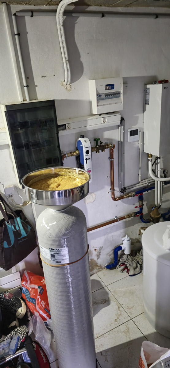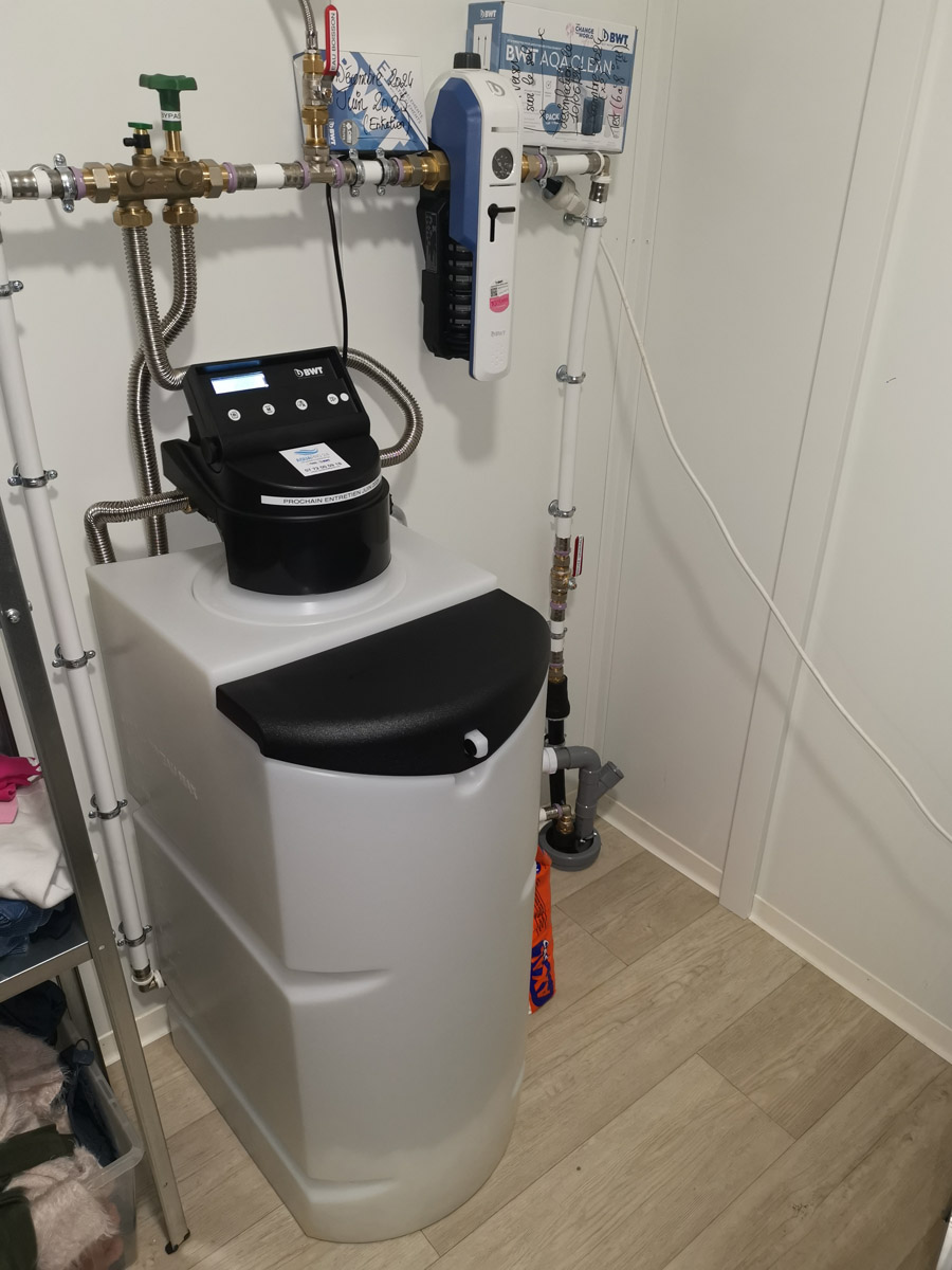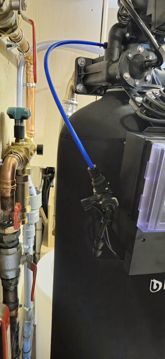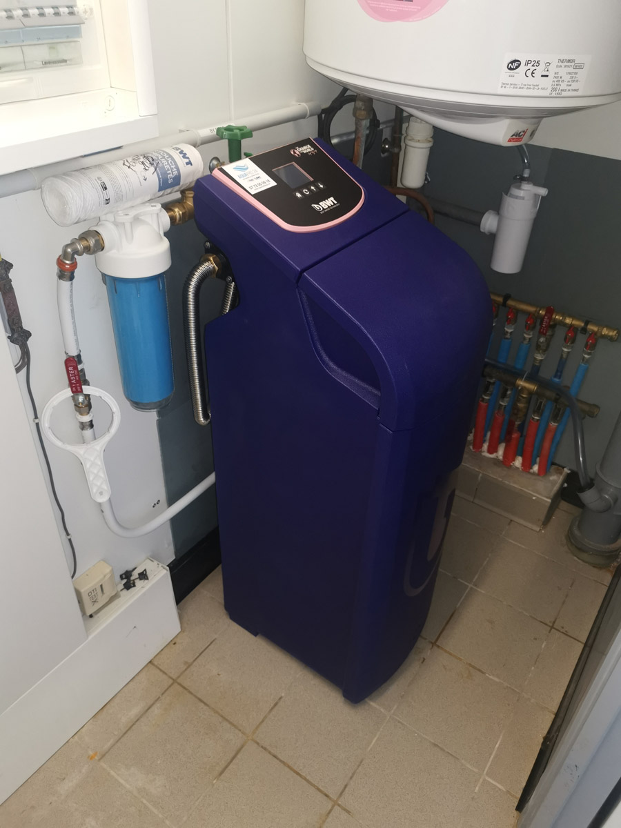 Installation Adoucisseur résidentiel BWT SPHERE XL sur maison neuve, reprise dérivation plomberie en Cuivre après constructeur