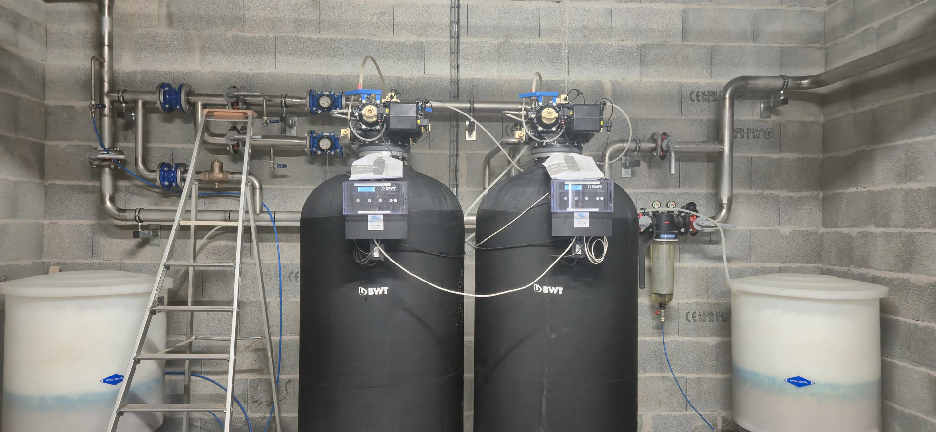 Entretien annuel réglementaire sur 2 Adoucisseurs Collectifs BWT Perla Pro XXL 400 montés en Duplex parallèle