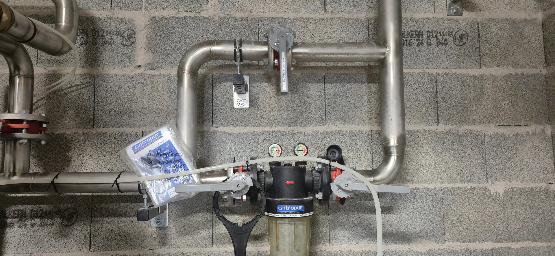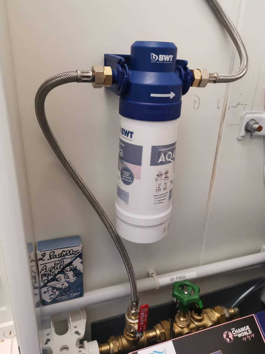 Installation Adoucisseur Collectif BWT PERLA PRO XS28 + Kit Chloration + dérivation Eau de Boisson avec filtration BWT AQAPURA