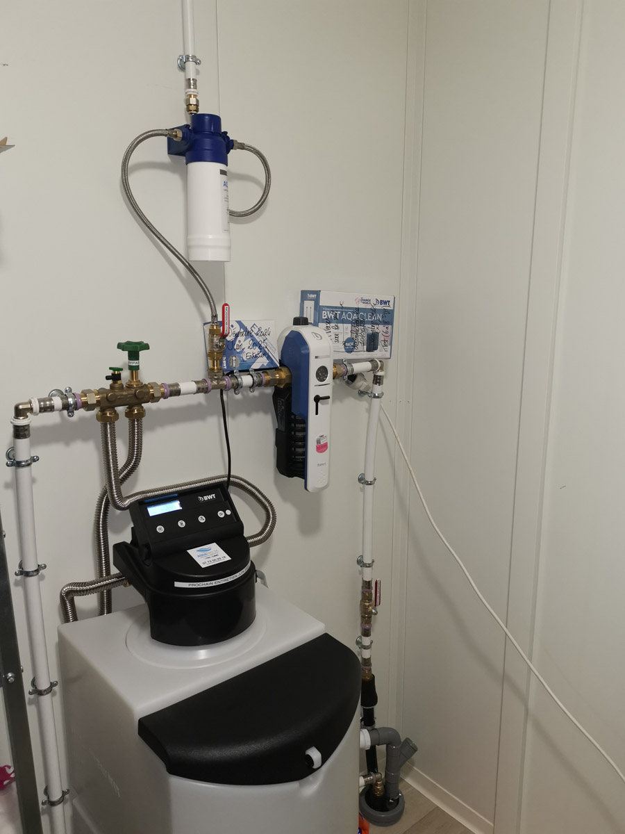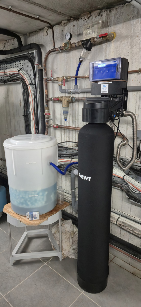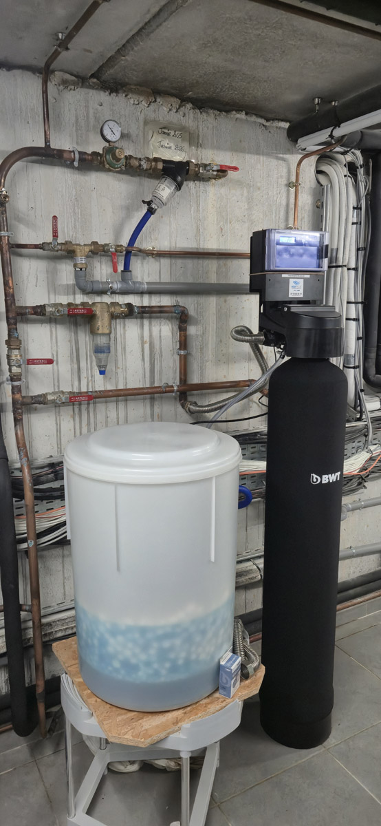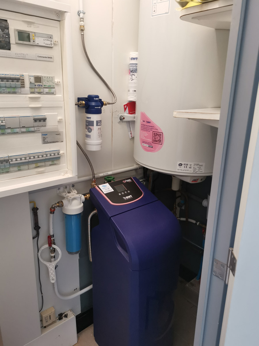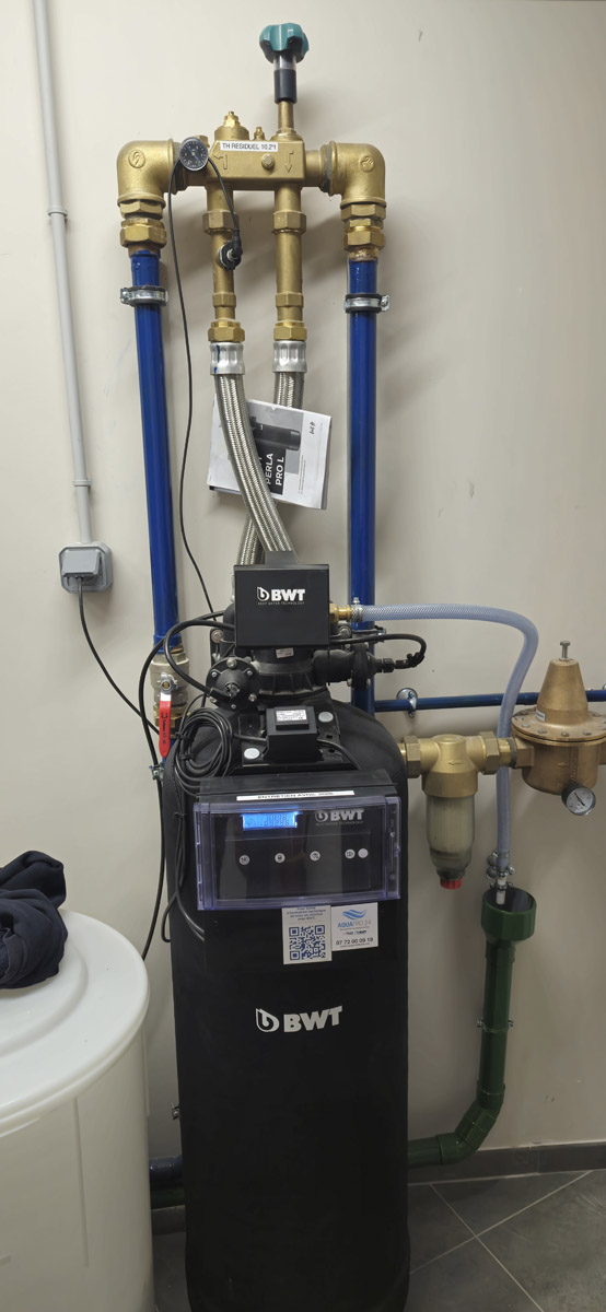Installation Adoucisseur Collectif BWT PERLA PRO S 50 + Kit Chloration et Pré-Filtration BWT E1