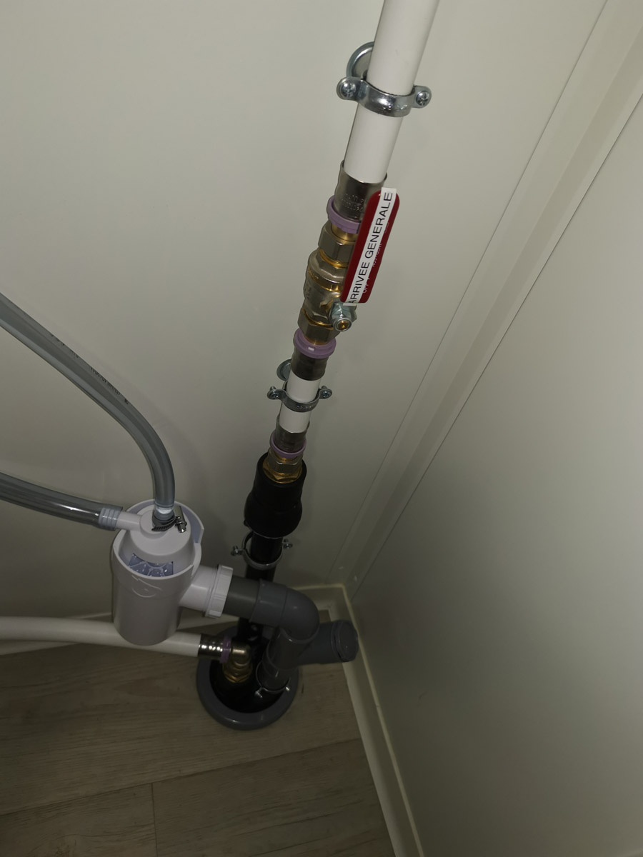 Installation Adoucisseur résidentiel BWT MY PERLA sur maison neuve, reprise dérivation plomberie en multicouche après constructeur