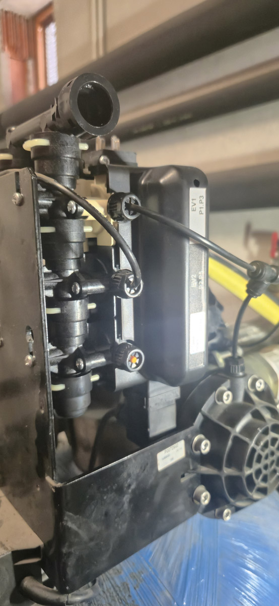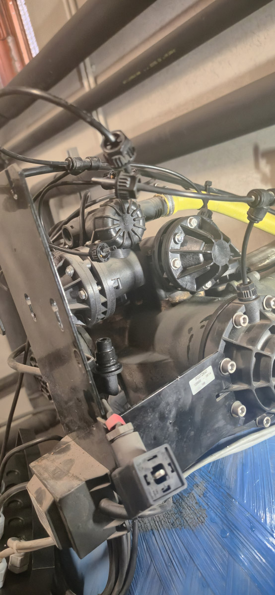 Transformation d’un adoucisseur BWT ALCYO 6025 de 2019 en PRO S 50 avec Kit Chloration résines, alimentant une cuisine professionnelle et une laverie.